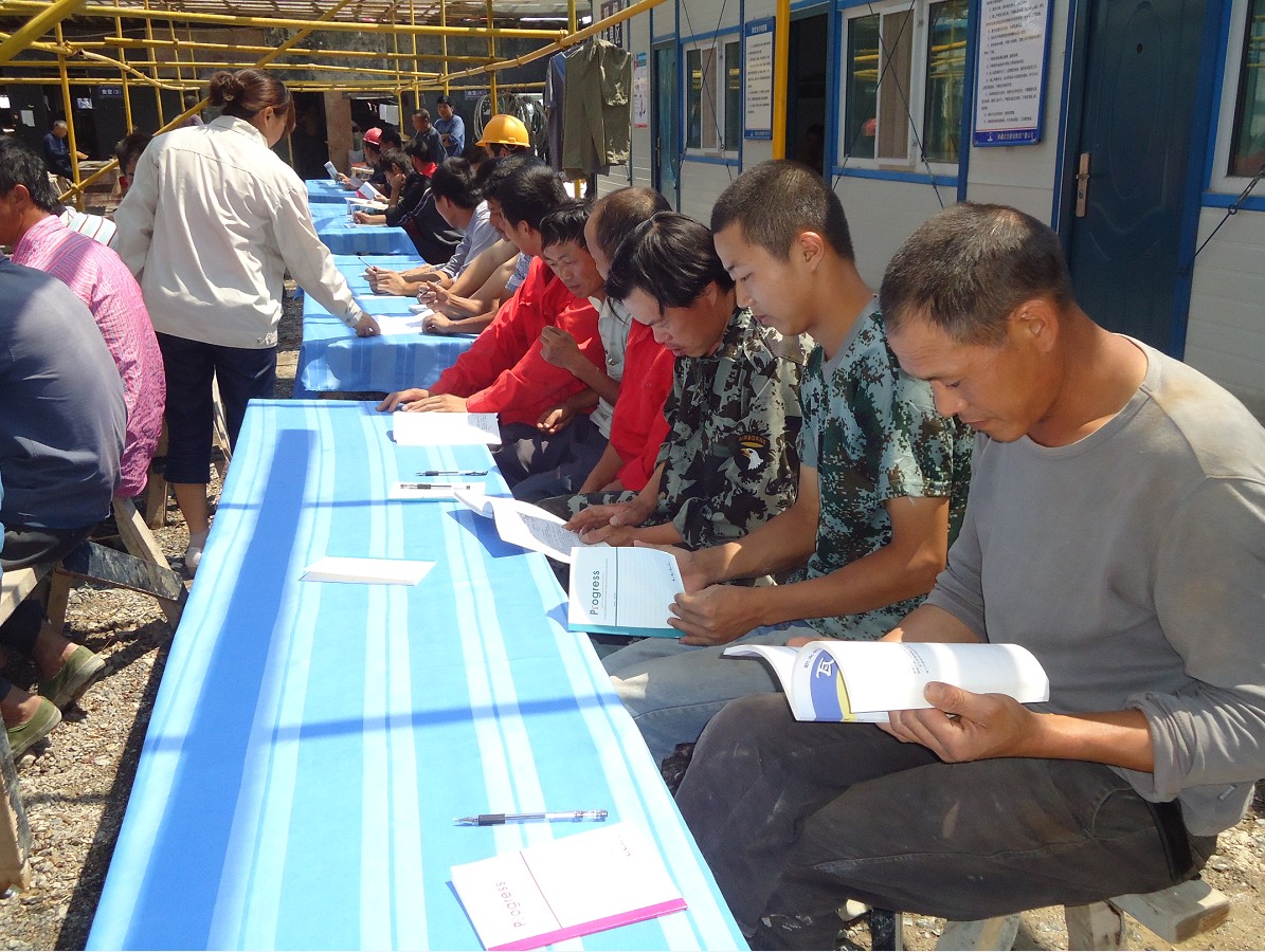 北方建設集團把關(guān)愛(ài)勞務(wù)工作為培訓工作的落腳點(diǎn),堅持以安全為主、以提高工程施工質(zhì)量抓手,抓住工程建設集中開(kāi)工,大量建筑工人集中作業(yè)的時(shí)機,及時(shí)開(kāi)展建筑工專(zhuān)業(yè)技能培訓。為了不影響建筑工人的工作時(shí)間,公司利用雨休或高溫休息時(shí)間適時(shí)組織培訓。