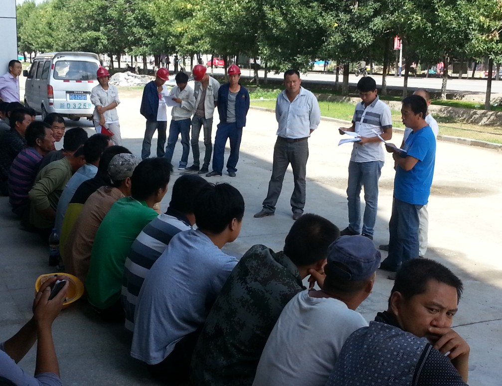 工業(yè)設備安裝公司副經(jīng)理何興國及項目經(jīng)理王新云、李晨生,給管技人員和勞務(wù)工講解《建筑施工安全檢查標準圖解》和《建筑施工安全檢查標準JG59-2011實(shí)施指南》,與勞務(wù)隊施工班組簽訂了《勞務(wù)用工合同》,讓大家理解安全發(fā)展的科學(xué)理念和指導原則,進(jìn)一步提高勞務(wù)工安全生產(chǎn)意識,加強勞務(wù)工自我防患,堅持“安全第一、預防為主、綜合治理”的方針。營(yíng)造人人講安全,人人守規范的安全生產(chǎn)氛圍。