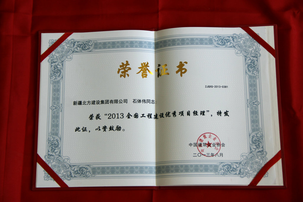 (通訊員 劉婕 周啟航) 從8月31日于張家界召開(kāi)的2013中國房地產(chǎn)/建筑業(yè)優(yōu)秀成果發(fā)布會(huì )暨行業(yè)發(fā)展趨勢研討會(huì )上獲悉,新疆北方建設集團路橋分公司石體偉榮獲全國工程建設優(yōu)秀項目經(jīng)理。據了解,“全國工程建設優(yōu)秀項目經(jīng)理”的評選工作,是經(jīng)各行業(yè)、地方建設(建筑、施工)行業(yè)協(xié)會(huì )推薦,由大會(huì )評審委員會(huì )審定,本次共評出全國工程建設優(yōu)秀項目經(jīng)理2名,石體偉為我集團公司本年度唯一獲此殊榮的項目經(jīng)理。