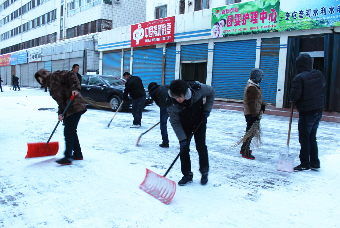 經(jīng)過(guò)半個(gè)小時(shí)的奮戰,該公司門(mén)前和鄰居店鋪門(mén)口的積雪全部被清掃干凈。盡管氣溫依然很低,但此次掃雪活動(dòng)涌現出的吃苦耐勞、團結協(xié)作的戰斗精神讓這個(gè)冬日變得格外溫暖和幸福。